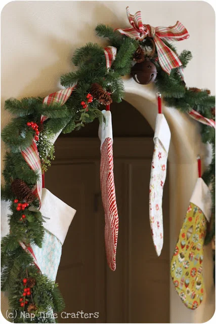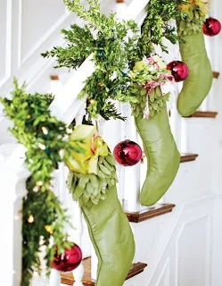 This is beautiful when there's garland included. And really I saw some great examples of beautiful garland in doorways, but not as many people have thought to put stockings there...guess there are not so many clever people out there ; )