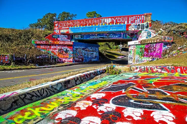 17th Ave train trestle "Graffiti Bridge" popular landmark where graffiti is allowed and the facade is changed daily.
